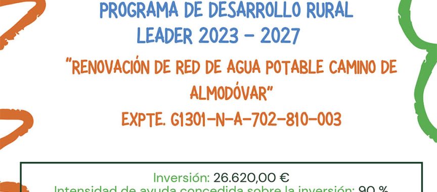 📊 Financiado con fondos del FEADER (Unión Europea), el Ministerio de Agricultura, Pesca y Alimentación (MAPA) y la Junta de Comunidades de Castilla-La Mancha a través de la Consejería de Agricultura, Ganadería y Desarrollo Rural, junto con una aportación municipal del 10 % mediante recursos propios del Ayuntamiento.