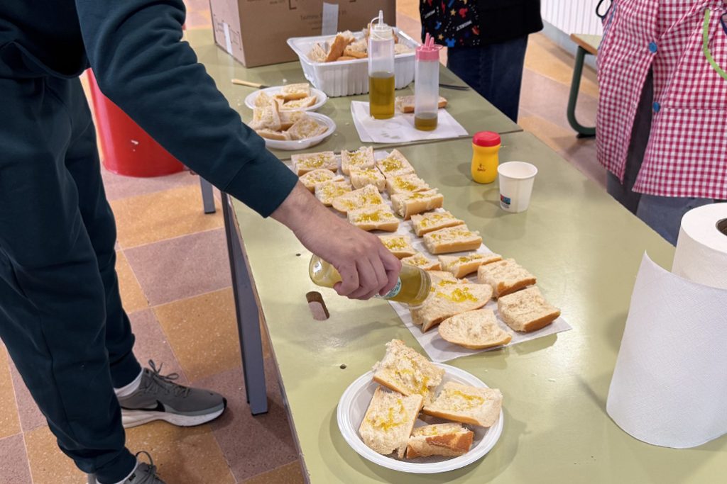 • Facilitando pan y aceite de oliva virgen extra que se reparte al alumnado.