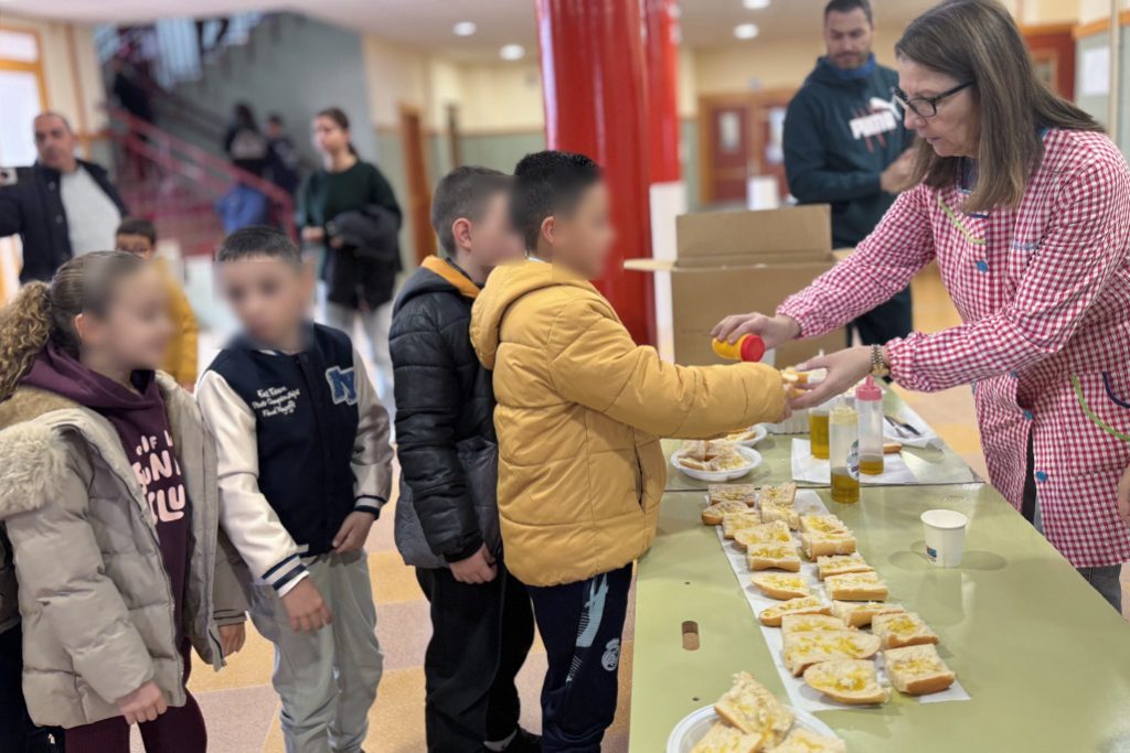 De hecho, desde el centro educativo constatan que el pan con aceite ha alcanzado un alto grado de aceptación entre los menores, situándose entre sus opciones preferidas para tomar energía, en una acción que por otro lado acercar al alumnado al origen de los productos de la tierra y al funcionamiento del trabajo en la Cooperativa torteña.